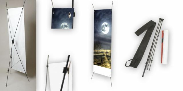 Beschreibung: Dieser höhenverstellbare X-Banner garantiert einen einfachen und schnellen Aufbau. Das Banner wird an den Ecken mit Ösen versehen und auf das X-förmige System gespannt.