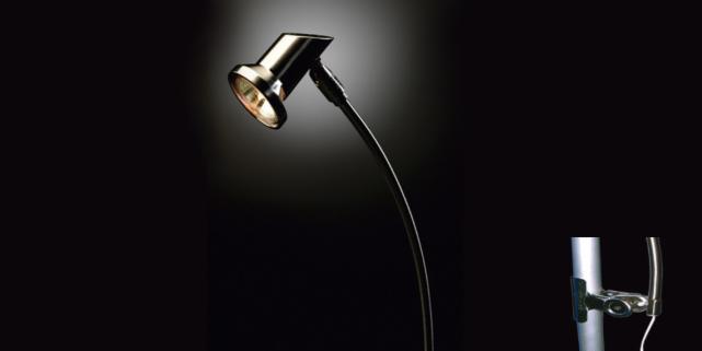 Beschreibung: Flexibler Spot mit Klemme zur schnellen Befestigung an der vertikalen Stange des Displaysystems