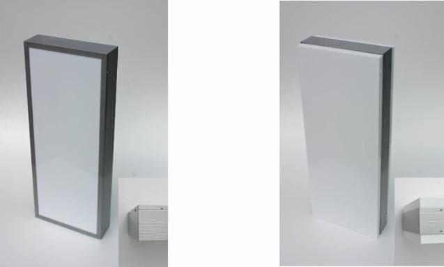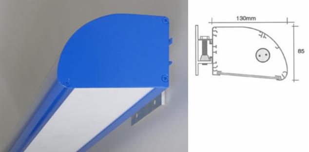 einseitig Haube oder Scheibe. Ausleuchtung durch Niederspannungsleuchtstoffröhren. Lackierung in RAL umlaufenden Meter,