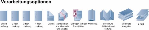 • sortieren • gruppieren • heften (Broschürenheftung) • lochen • Falzen ( Wickelfalz) • Prospekt • Overheadfolien