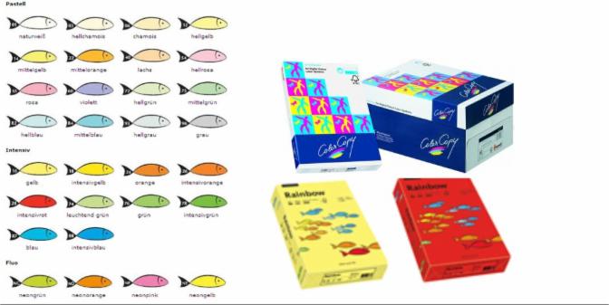 Farbige Papiere, Präsentationspapiere 90g/qm bis 350g/qm, Falten, Lochen, Kopf-und Rückenstichklammern, Overheadfolien,